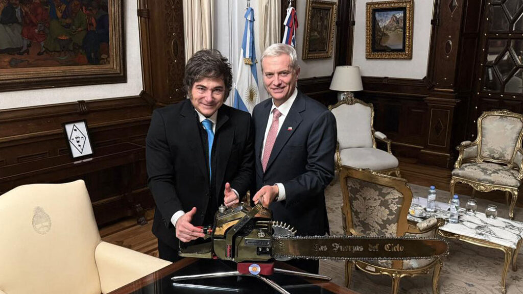 José Antonio Kast como presidente electo en la Casa Rosada junto al Presidente de Argentina, Javier Milei. Diciembre 2025. Fotografía: Emol
