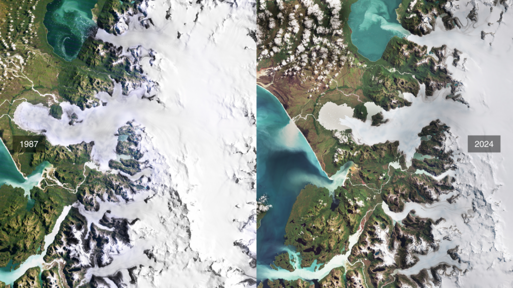 - European Space Agency. (17 oct 2025). «Satellite images reveal glacier retreat in Patagonia». Agencia Espacial Europea.